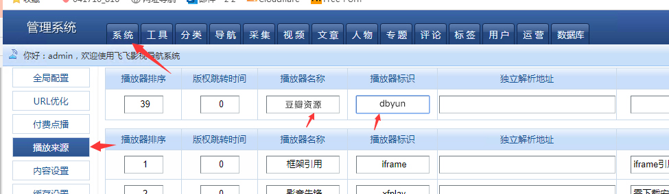 豆瓣资源:admin_maccj.php?action=list&xt=1&ct=&rday=&cjflag=dbzy&cjurl=https://caiji.dbzy5.com/api.php/provide/vod/at/xml/